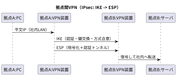 拠点間VPN(サイト間)=IPsecの定番(IKE→ESP)